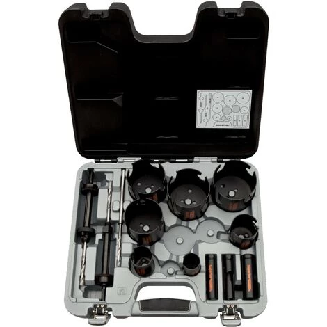 Ce coffret de scie trĂ©pan Superior multi usages au carbure Bahco 3833-SET-201 est composĂ© de 14 piĂšces : scie de 19, 20, 25, 32, 41, 51, 73, 76, 83 et 86mm, arbre support 3834-ARBR-930EL, arbre support 834-ARBR-9100EL, foret pilote 3834-DRL-E et adaptateur Ă©largisseur 3834-UPSIZE. Elle s’adapte Ă toutes les perceuses Ă©lectriques Ă colonne et portables. Elle s’utilise sur la plupart des matĂ©riaux tels que le bois, le MDF, le plĂątre, le placage, le plastique et la brique. La scie trĂ©pan Bahco 3833 Multi-Construction permet Ă©galement la coupe en angle. Elle offre une grande profondeur de coupe de 71mm et reçoit des larges fentes d’Ă©vacuation pour Ă©liminer rapidement les matĂ©riaux.