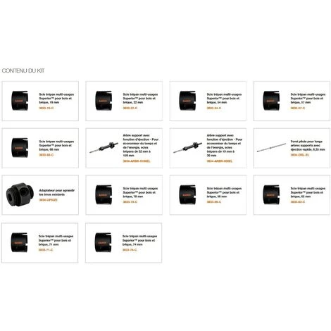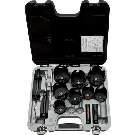 Ce coffret de scie trépan Superior multi usages au carbure Bahco 3833-SET-203 est composé de 14 pièces : scie de 19,22, 54, 56, 57, 62, 68, 71, 74 et 78mm, arbre support 3834-ARBR-930EL, arbre support 834-ARBR-9100EL, adaptateur élargisseur 3834-UPSIZE et foret pilote 3834-DRL-E. Elle s’adapte à toutes les perceuses électriques à colonne et portables. Elle s’utilise sur la plupart des matériaux tels que le bois, le MDF, le plâtre, le placage, le plastique et la brique. La scie trépan Bahco 3833 Multi-Construction permet également la coupe en angle. Elle offre une grande profondeur de coupe de 71mm et reçoit des larges fentes d’évacuation pour éliminer rapidement les matériaux.