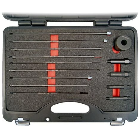 - Ce jeu comprend tous les outils nécessaires pour permettre une extraction sécurisée de la borne de l’électrode de la bougie de préchauffage sans endommager la tête du cylindre.
