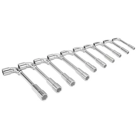 - Extrémités coudée et droite débouchées permettant le serrage d’écrous sur des tiges filetées longues.