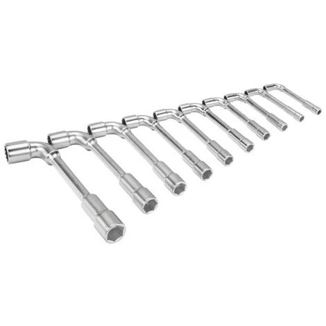 - Extrémités coudée et droite débouchées permettant le serrage d’écrous sur des tiges filetées longues.