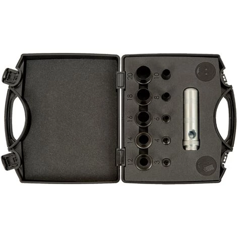 - Diamètre des emporte-pièces : 3 mm, 4 mm, 6 mm, 8 mm, 10 mm, 12 mm, 14 mm, 16 mm, 18 mm, 20 mm.