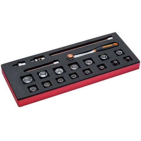 BAHCO – Jeu de douilles 3/8″ et cliquet à tête ronde, module mousse 1/3 Fit&Go – 20 pcs