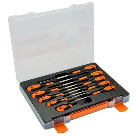 BAHCO – Jeu de tournevis à fente/Phillips/Robertson avec poignée en caoutchouc – 10 pcs