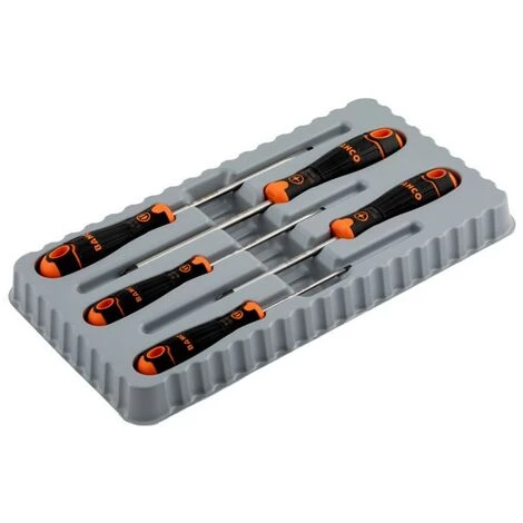 BAHCO – Jeu de tournevis vis à fente/Pozidriv BahcoFit avec poignée en caoutchouc – 5 pc