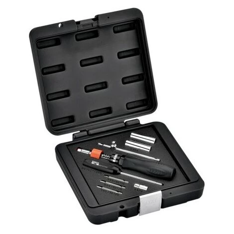 - Clé dynamométrique ajustable pré-calibrée (1-6 Nm) couvrant la plupart des couples de serrage.