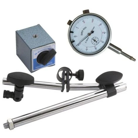 - Indicateur à cadran pour mesure de précision : 0,01 mm.