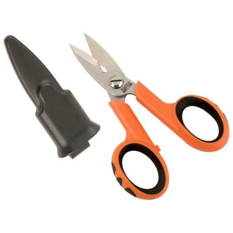 Ciseaux d’�lectricien avec encoche 5″ Poids 13gr Longueur 145mmPoign�es en plastique et �lastom�re.L�ger, r�sistant, avec encoche pour couper les c�bles �paisAme m�tallique dans tout le corps des ciseaux.
