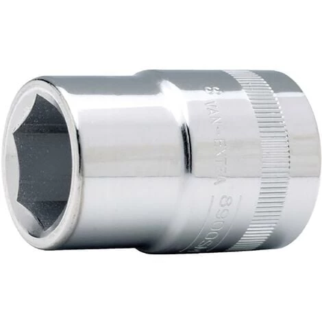 Douille de longueur standard, 3/4′ carré. Dimensions hexagonales, métriques. Ne convient pas aux machines à chocs. Acier allié haute performance. Finement poli. Cannelé. ISO 2725 / 1174. DIN 3124 / 3120.