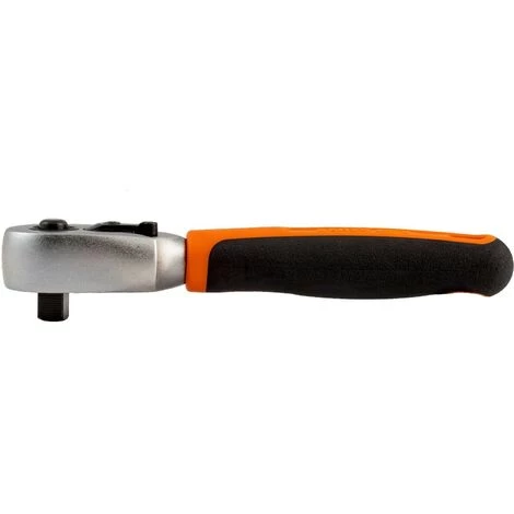 Cliquet professionnel Bahco SBS61S avec carré de 1/4 incliné de 6 degrés pour un meilleur serrage et une meilleure accessibilité. Ce cliquet robuste reçoit 60 dents afin de garantir une précision optimale, conçu en acier CrV de haute qualité et en Nickel avec finition chromatée. Longueur totale 120mm existe en version 145mm, Le changement de sens s’effectue sans lâcher le cliquet, l’engagement et le dégagement rapide de la douille se font par un bouton poussoir ce qui garantit une excellente tenue de la douille. Son manche Bi-matière offre une très bonne prise en mai et un grand confort d’utilisation. Idéal pour professionnel ou amateur exigeant.
