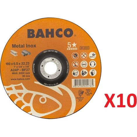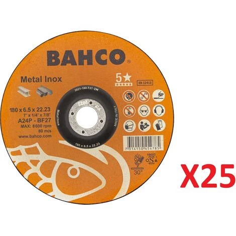 Disque à ébarber pour acier inoxydable et métal Bahco 3921-180-T27-IM pour outillage électroportatif. Diamètre 180mm, épaisseur 6.5mm et alésage 22.23mm. Disque haute performance pour couper l’acier inoxydable avec précision et une formation minimale de bavures. Le temps de coupe est optimal et la durée de vie prolongée, faible vibration pour une stabilité accrue. Composition sans ferrite, ni souffre, ni chlore. Certification OSA, conforme à la norme EN12413. Qualité 5 étoiles. Disponible à l’unité, en lot de 5, 10 et 25.