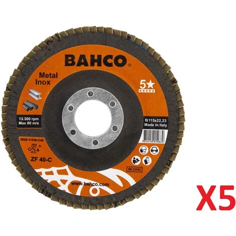 Disque à lamelles pour acier inoxydable et métal Bahco 3926-115IM-C40 pour outillage électroportatif. Diamètre 115mm, granulation 40 et alésage 22.23mm. Plateau en fibres de verre multicouches léger et silencieux. Efficacité optimale pour les surfaces en métal ou en acier inoxydable. Supporte des pressions élevées pour une bonne performance d’enlèvement. Forme conique idéale pour les bords, profilés ou cordons de soudure. Gain 100% zirconium pour une longue durée de vie. Composition sans ferrite, ni souffre, ni chlore. Certification OSA, conforme à la norme EN13743 Disponible à l’unité, en lot de 5, 10 et 20.
