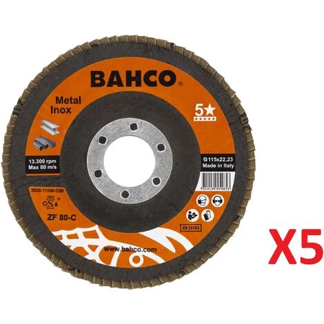 Disque à lamelles pour acier inoxydable et métal Bahco 3926-115IM-C80 pour outillage électroportatif. Diamètre 115mm, granulation 80 et alésage 22.23mm. Plateau en fibres de verre multicouches léger et silencieux. Efficacité optimale pour les surfaces en métal ou en acier inoxydable. Supporte des pressions élevées pour une bonne performance d’enlèvement. Forme conique idéale pour les bords, profilés ou cordons de soudure. Gain 100% zirconium pour une longue durée de vie. Composition sans ferrite, ni souffre, ni chlore. Certification OSA, conforme à la norme EN13743 Disponible à l’unité, en lot de 5, 10 et 20.