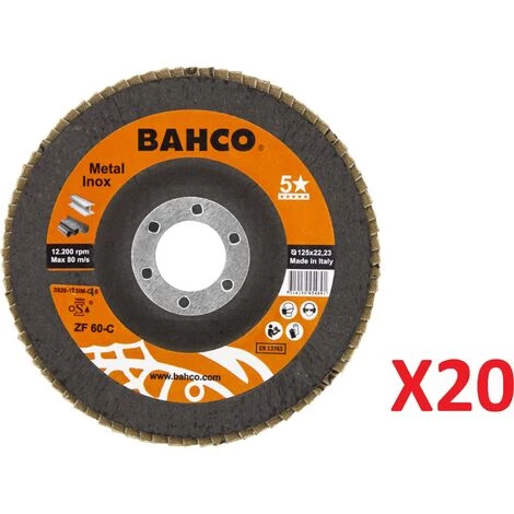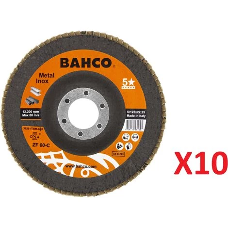 Disque à lamelles pour acier inoxydable et métal Bahco 3926-125IM-C40 pour outillage électroportatif. Diamètre 125mm, granulation 40 et alésage 22.23mm. Plateau en fibres de verre multicouches léger et silencieux. Efficacité optimale pour les surfaces en métal ou en acier inoxydable. Supporte des pressions élevées pour une bonne performance d’enlèvement. Forme conique idéale pour les bords, profilés ou cordons de soudure. Gain 100% zirconium pour une longue durée de vie. Composition sans ferrite, ni souffre, ni chlore. Certification OSA, conforme à la norme EN13743 Disponible à l’unité, en lot de 5, 10 et 20.