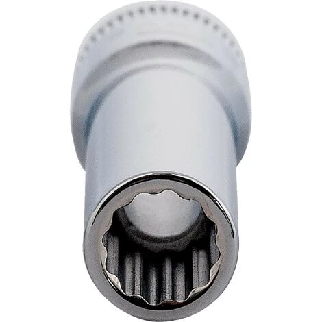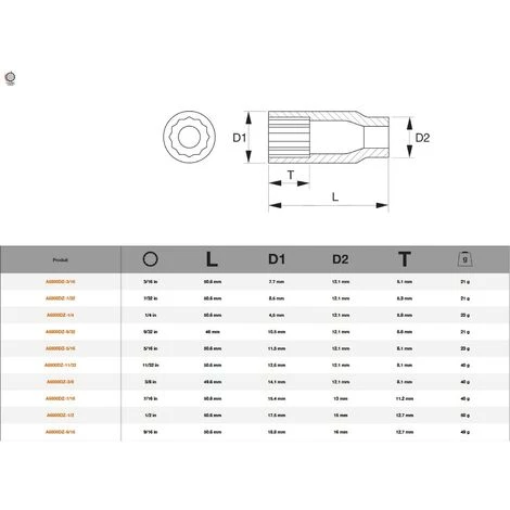 Douille longue en pouces (américain) Bahco A6800DZ avec fixation carré de 1/4 et empreinte femelle 12 pans Longueur totale 50.6mm. Paroi fine et réduction de l’usure grâce au profil » Dynamic Drive TM « . Cette douille bénéficie d’un corps cranté pour approcher le serrage et le desserrage à la main de vos vis, elle est incompatible avec les outils motorisés (visseuse…) mais compatible avec tous les outils à main à embout carré de 1/4 (Tournevis, cliquet, bras de force…). Conçu dans un alliage d’acier haute performance avec une finition polie elle est parfaite pour les utilisations intensives (professionnel ou bricoleur exigeant). Normes ISO 2725-1/1174-1 et DIN 3120. Nombreuses tailles disponibles