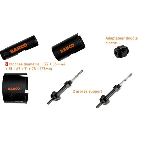 Ensemble De Scie Trepan Bahco 3833 11 Pièces Du 22 Au 67mm Avec Arbre Support Et Adaptateur