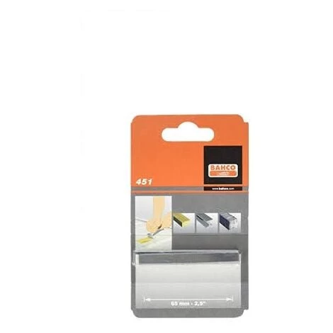 Lame de 65mm Bahco 451 à double tranchant pour grattoir Bahco. Convient aux modèles 665 et 450 Conçue en carbure cémenté cette lame offre une durée de vie jusqu’à 50 fois supérieure à une lame classique. L’affutage de précision est légèrement convexe pour éviter les rayures sur le support à gratter. La lame est réversible pour offrir une durée de vie encore accrue. Autres modèles de lames disponibles en stock pour grattoirs et cutter.
