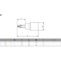 Douille 1/4 Cruciforme Empreinte Philipps Bahco 6709PH-3 Taille PH3