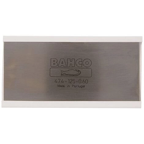 Ce racloir 474-125-0.60 Bahco est spécialement conçu pour les travaux de menuiserie, pour aplanir la surface du bois et gratter la peinture. Lame en acier au chrome-nickel, laminé à froid, trempé et revenu. Bords coupants sous protection en plastique blanc. Dimensions 125×0.6mm. existe également en 125×0.8mm disponible en stock.