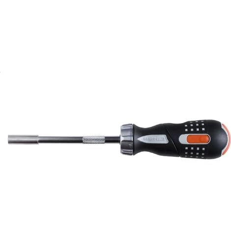 Tournevis professionnel Bahco 808050P à cliquet avec porte embout. Livré avec 6 embouts dont 4 cruciformes (PH1, PH2, PZ1 et PZ2) et 2 plats de 4.5 et 5.5mm avec fourreau de rangement. Emprunte ¼ aimantée permettant de monter d’autres embouts (en option). Poignée orientable à 30 degrés pour augmenter la puissance de serrage ou de desserrage. 3 positions de cliquet : Serrage, desserrage ou verrouillé. Nombreux modèles de cliquets disponibles en stock. Outil garanti à vie Bahco.